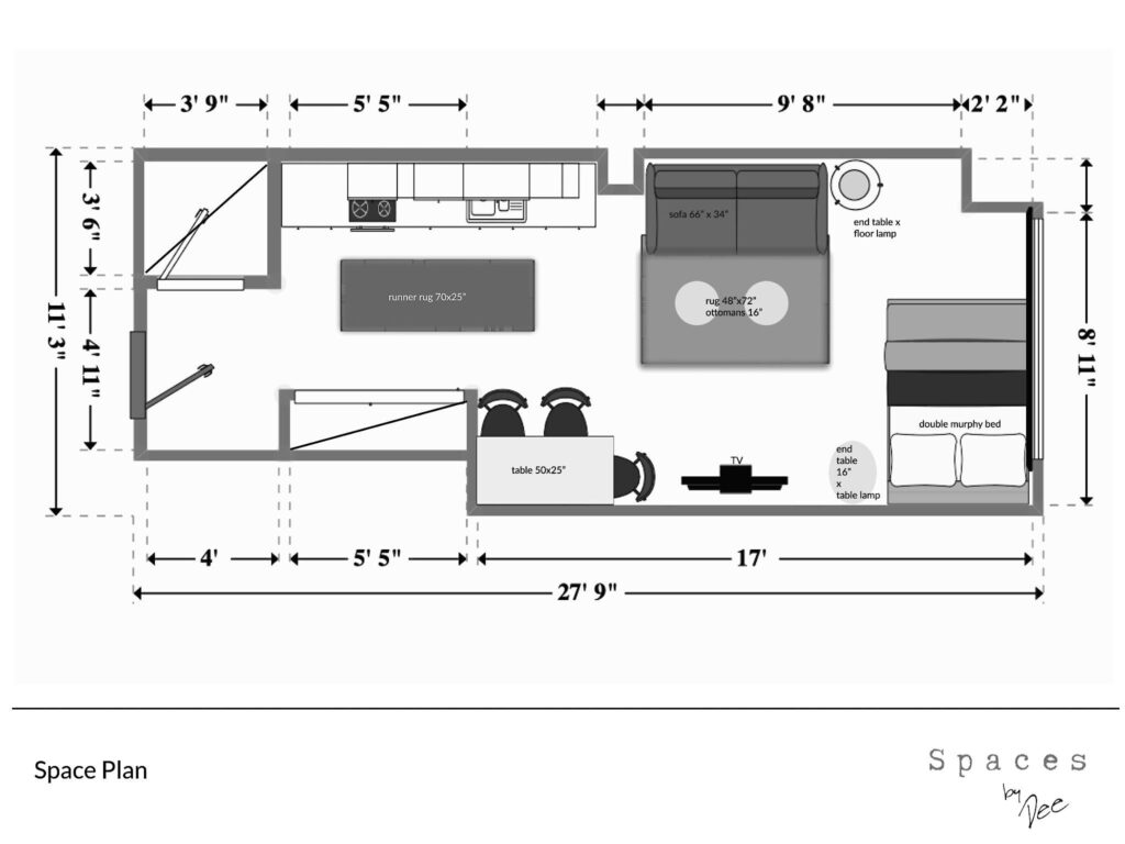 You might also consider adding a separate reading nook with a cozy chair and proper lighting. At the same time, think about what you can live without. For example, maybe a full-sized dining table isn’t necessary. If eating in front of the TV makes you happy, then go with that. A small bistro table could be more than enough for the occasional guest, like when your mom comes over. It all comes down to designing a space that reflects what actually matters to you.