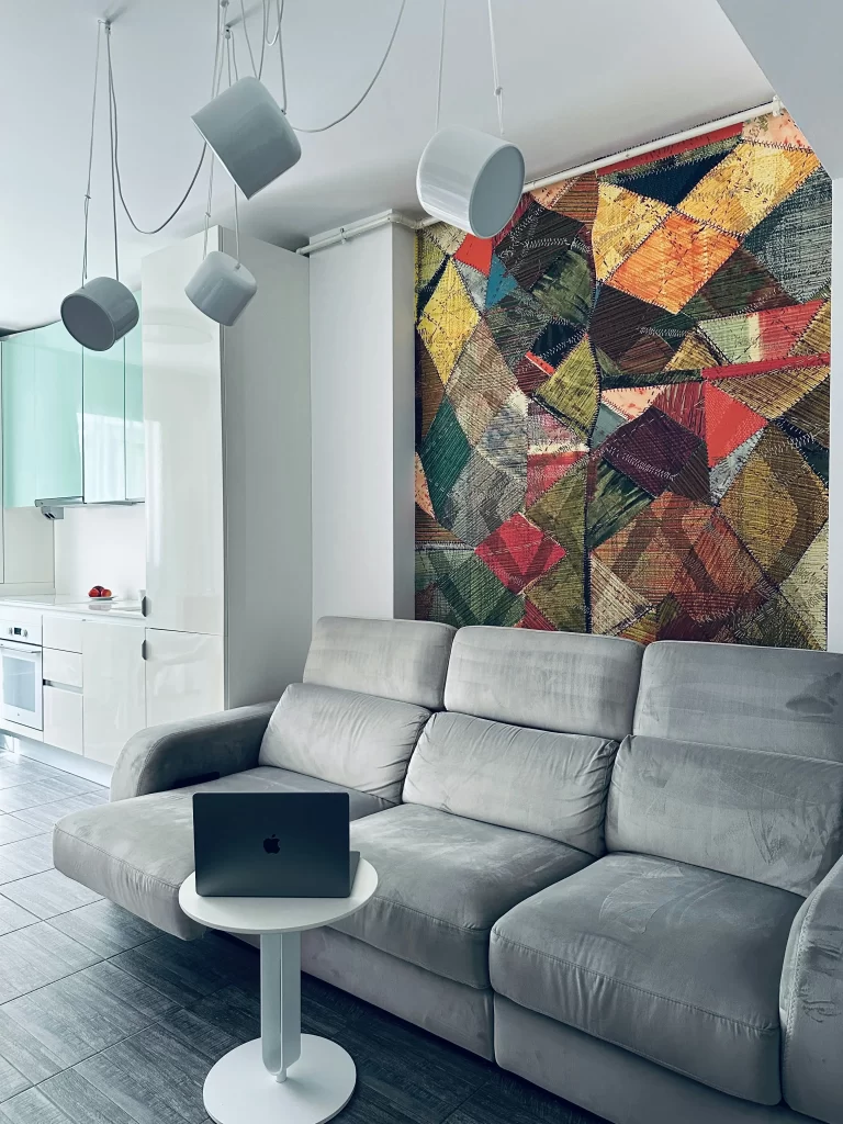 Wall tapestries, or even rugs hung on the wall, are a fantastic way to dress up a space. It’s one of my favourite techniques because fabric softens any room and feels less predictable than traditional artwork. This approach can also absorb sound, add comfort, and bring style — a definite win in my interior design book!