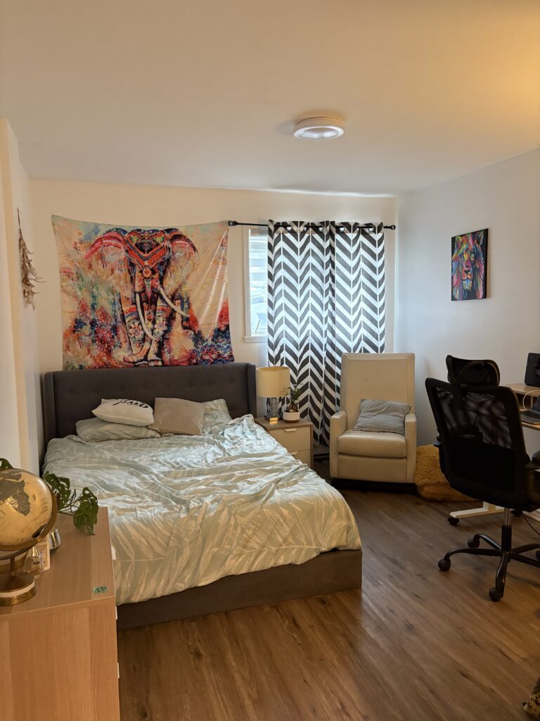 I’m currently staying in an Airbnb in Montréal, as I am taking a hiatus from Toronto (that’s a story for another blog post). Here is my Airbnb bedroom, and it will be our guinea pig. Honestly, it looks like someone just walked into HomeSense, grabbed the first few decor pieces they saw, and called it a day. It’s giving major live-laugh-love/spent the summer partying in Bali vibes. And hey, there’s nothing wrong with that, I am not trying to be rude, however I am a designer and naturally my brain critics every room. So, the room is fine. But is the bedroom the latest and greatest bedroom design that one could create? No.