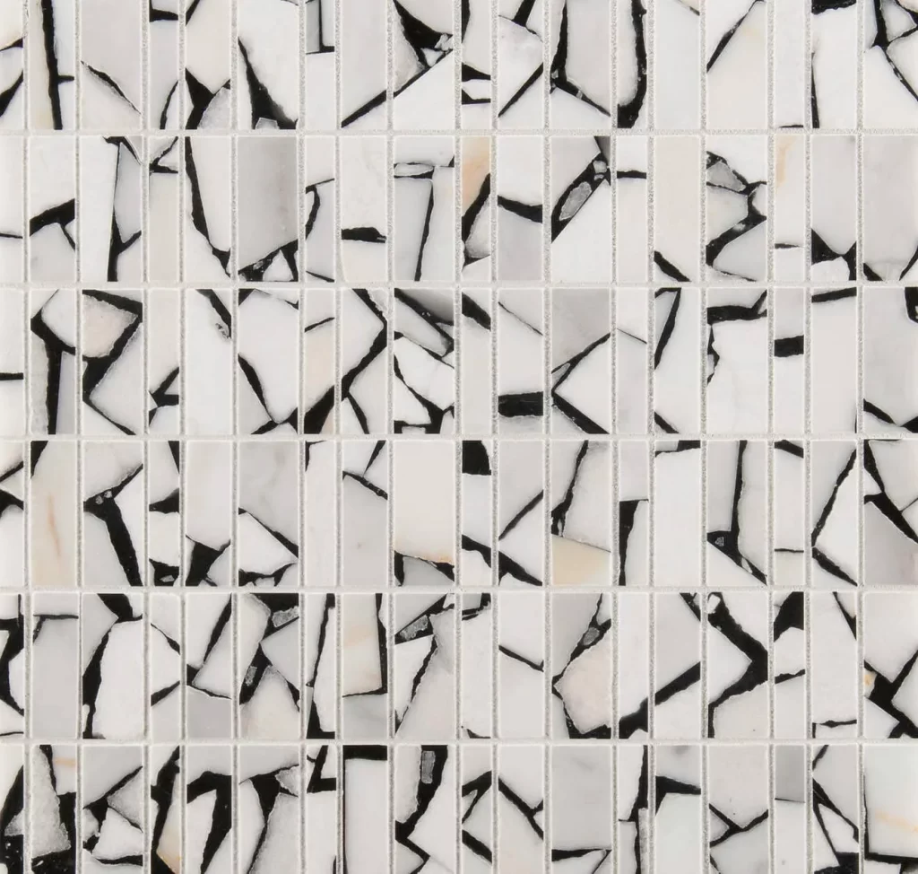 The tile: Ann Sacks, Selvaggio Safari – Bianco Nero, Square.