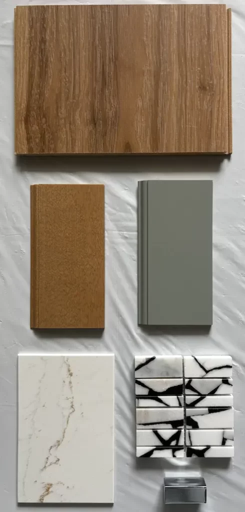 I laid out all the material samples, reviewed my options, and finalized the selections for this cool-girl kitchen. It was easy once seeing the samples in-person. Below I will insert raw, unedited photos of my final selections so you can really see the detail.