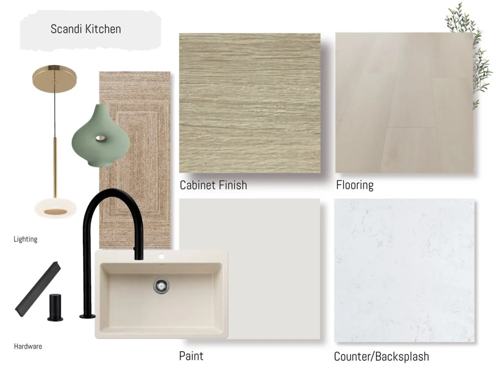 I prompted Nano Banana Pro with Create a mood board that is a Scandinavian style, with light oak wood, taupe, black fixtures, beige, and textured accents…