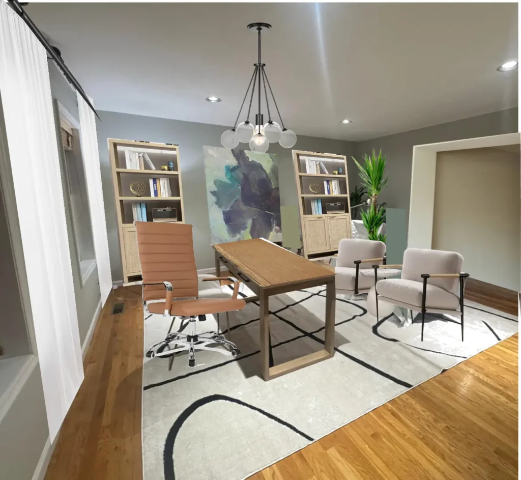 Next, I actually uploaded some furniture finds from Amazon and asked it to create an office design. Here is what I got.